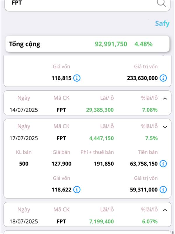Thanh Huy Stock ngon, mình mới tham gia tích luỹ FPT từ 19/6 nên giá chưa đẹp lắm