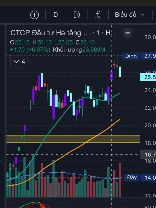 Gia Cát Lượng CII tạo 2 đỉnh bulltrap vùng giá 26.x & dao động lỏng lẻo trong biên 21-26 trong 2 tháng nay.