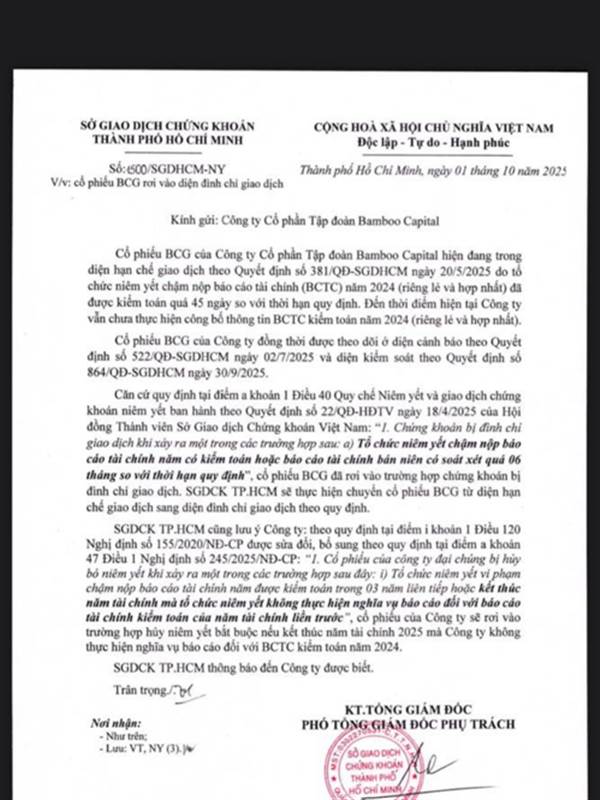 mới có thông báo sẽ đình chỉ, chưa có quyết định chính thức từ ngày nào, thường thì có qđ sẽ có 5 ngày làm vc để giao dịch trc khi đình chỉ, có thể tối nay, mai, hoặc cuối tuần có qđịnh k biết ntn