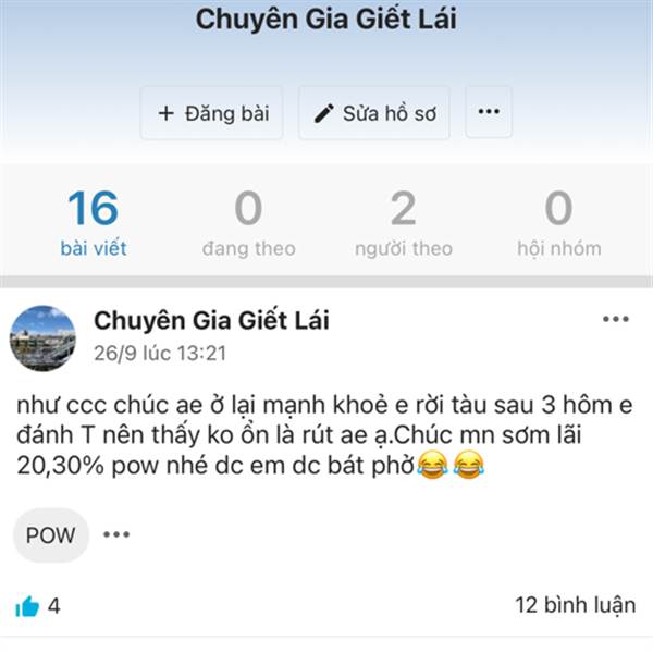 như ccc chúc ae ở lại mạnh khoẻ e rời tàu sau 3 hôm e đánh T nên thấy ko ổn là rút ae ạ.Chúc mn sơm lãi 20,30% pow nhé dc em dc bát phở😂😂