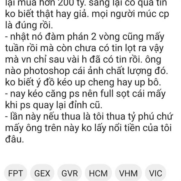 vni chạy như tầu lượn. - do nhóm trụ phục vụ phái sinh nên lái chọn 5-7 cp ra kéo để đóng ps cho có lợi. 1 số cp khác sẽ ăn theo tý. - nhóm cp ngoài vn30 sẽ rơi vào cảnh cưa dần mỗi hôm cưa tý. -sẽ có 1...Thêm