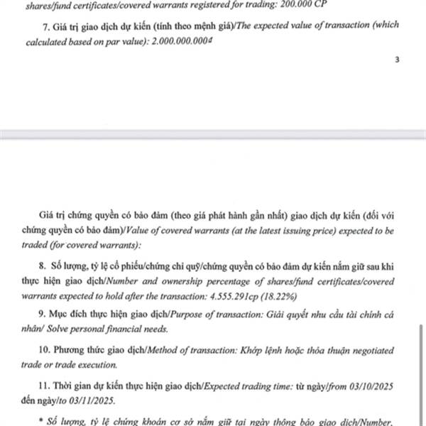 + 7 % cổ phiếu đã được ubck chấp nhận 17/12