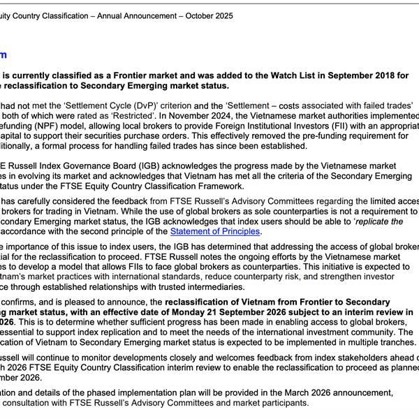 Các con giời vểnh tai lên mà nghe nhé. Nâng hạng thành công rồi nhưng mà FTSE phải làm việc với các quỹ đầu tư và các nhà quản lý tài sản về quy trình và quy định. FTSE còn phải mô phỏng thử nghiệm rổ...Thêm
