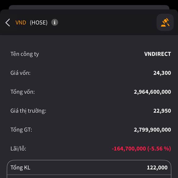 Bắt đầu tính toán đến việc Margin Call được rồi, nhất là phiên thứ 6 tuần này. Mình nghĩ Vni chỉ điều chỉnh thôi, giảm điểm càng mạnh thì thời gian điều chỉnh sẽ ngắn, sợ nhất là cưa chân bàn và bullt...Thêm