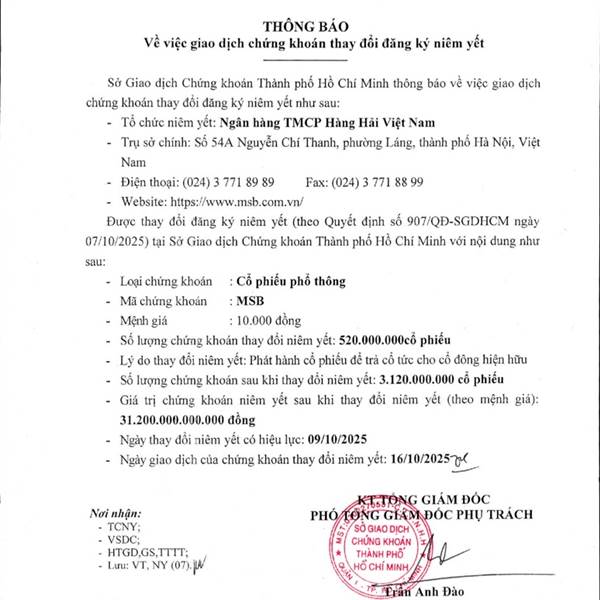 Chứng khoán VCBS dự báo MSB có thể đạt mức tăng trưởng tín dụng 21,2% trong năm 2025, lợi nhuận trước thuế tiệm cận 8.200 tỷ đồng.