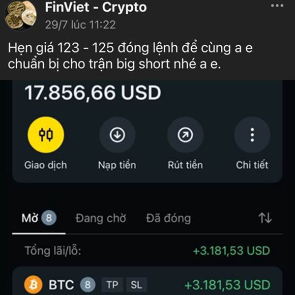 Hôm 29/7 m cũng gợi ý cho a e big short,lí do short là lịch sử BTC luôn quét đỉnh trc khi rơi.Và cây ngày 13/8 và 14/8 nếu theo oneil chính là 2 cây nến tạo đường ray xe lửa (1 trong những tín hiệu xá...Thêm