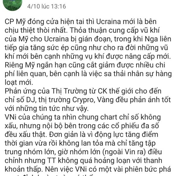 Anh em cứ mong nó lên 1700, lên đó rồi sao nữa. Khoảng cách 34 điểm nữa thì quánh lên cái 1 thôi chứ khó gì đâu, nhưng lên đó rồi sao nữa tiền có đồng bộ lan tỏa hay không mới quan trọng.