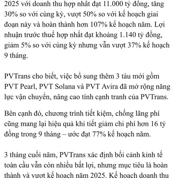 PVT lợi nhuận vượt 1000 tỷ sau 9 tháng,