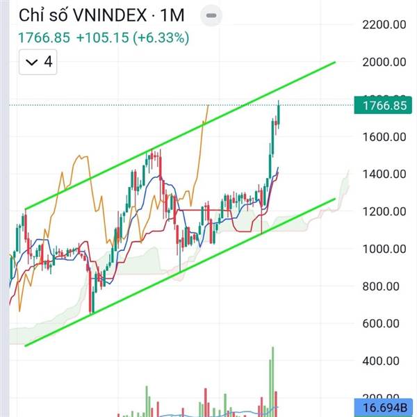 Tăng tiếp lên biên trên, vùng 1760 điểm.