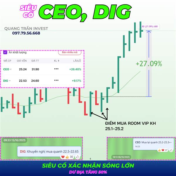 1 CỔ PHIẾU CỰC MẠNH mua ngay nếu chỉnh, tuần sau tăng mạnh giống CEO