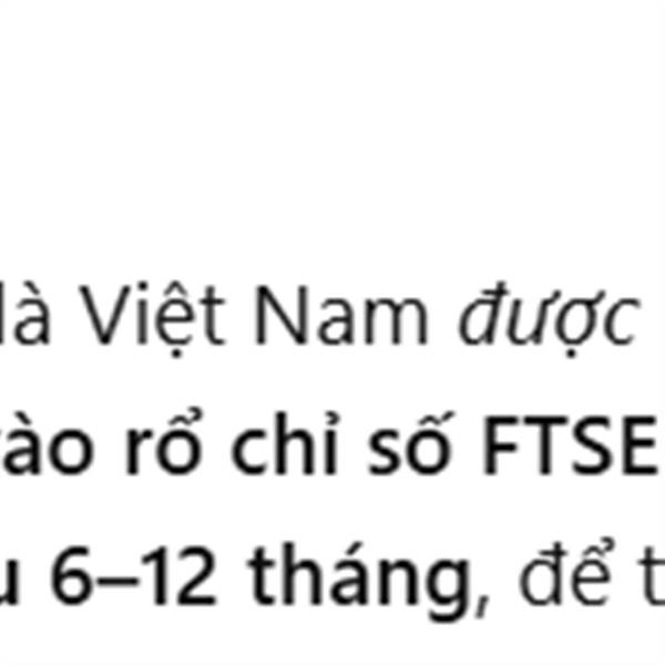NÓNG: FTSE Russell chính thức nâng hạng Việt Nam lên thị trường mới nổi thứ cấp