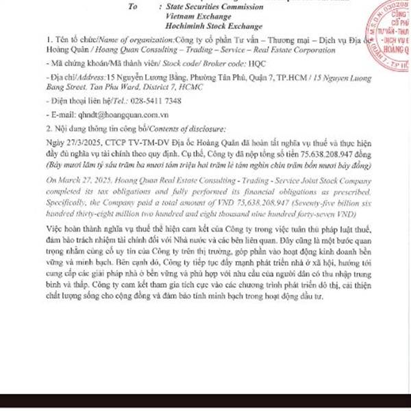 Đợt đầu năm nó nợ gần 76 tỷ tiền thuế cũng bị cơ quan thuế gửi công văn xong nó cũng nộp đủ, h thiếu 5 tỷ thì lại đợi nó nộp đủ thôi
