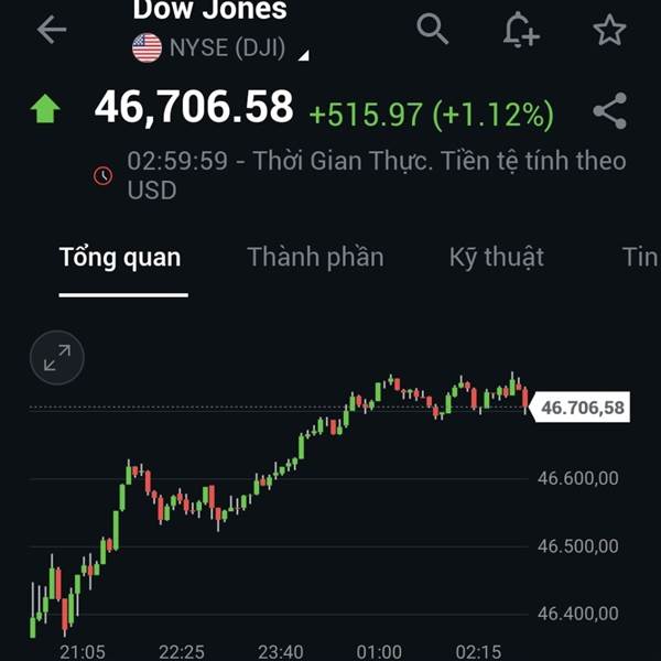Chỉ số Dow Jones đêm qua mở Gap tăng rồi giảm dần ngay từ đầu phiên, kết phiên giảm 0.51% nhờ sự níu kéo của nhóm cổ phiếu công nghệ như Apple, Nvidia. Các công ty này nếu có dự án đầu tư tại Mỹ thì s...Thêm