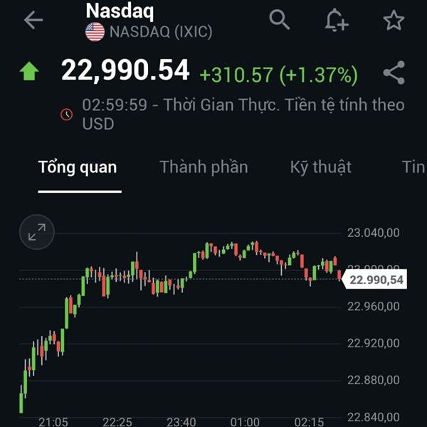 Sau một phiên giao dịch lập đỉnh lịch sử, DJ quay đầu giảm 273đ(-0.59%). Mức giảm nhẹ nhàng này nhờ lực đỡ của các cổ phiếu công nghệ Apple, Microsoft, Nvidia. Cũng chính nhờ nhóm này đã giúp Nasdaq t...Thêm