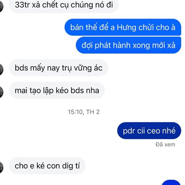 Thằng nào thèm tiền, thích cầm mấy đồng bạc lẻ nghỉ lễ thì bán hết mẹ mày đi cho nhanh. Để Tạo Lập gom 1 thể còn đánh lên 9x cho sớm chợ. Anh em team Tạo Lập trên tàu đang suốt ruột rồi