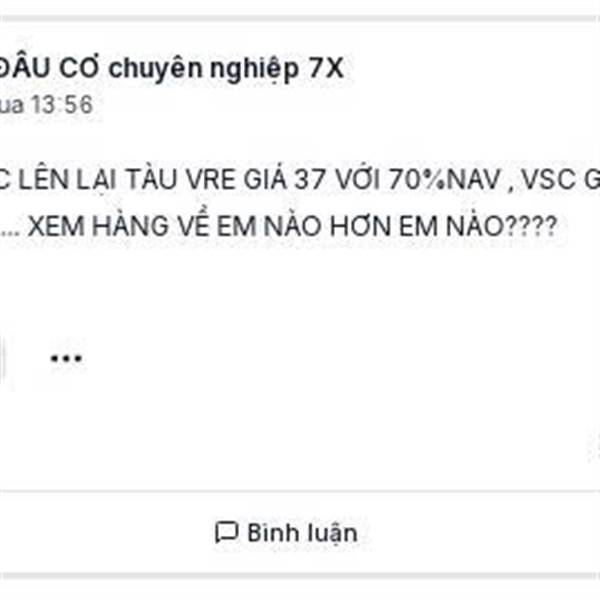 CHÍNH THỨC LÊN LẠI TÀU VRE GIÁ 37 VỚI 70%NAV , VSC GIÁ 27 VỚI 30% NAV.......... XEM HÀNG VỀ EM NÀO HƠN EM NÀO????