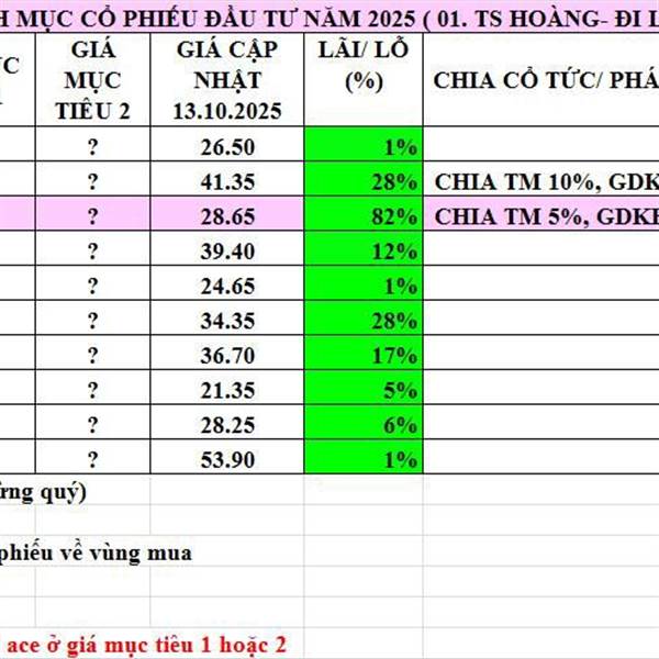 Cập nhật danh mục khuyến nghị 10.10.2025