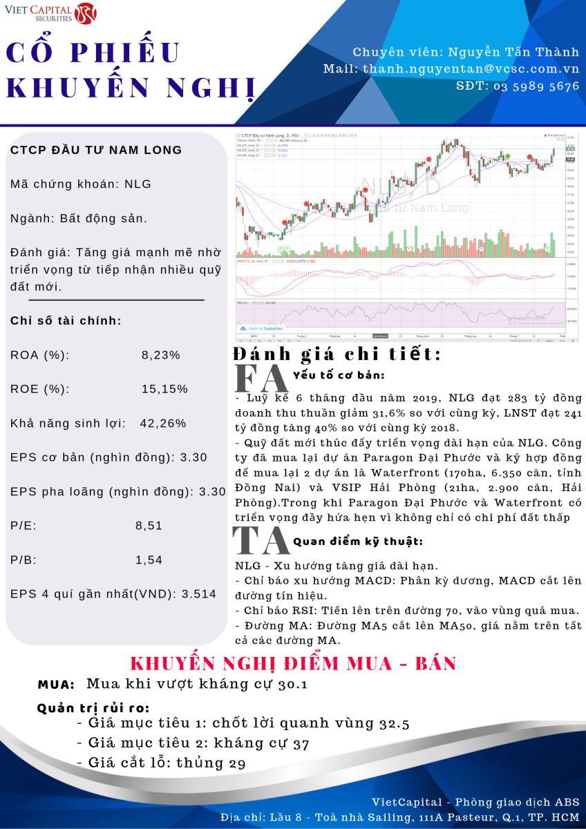 Quỹ đất mới thúc đẩy triển vọng dài hạn của NLG. Công ty đã mua lại dự án Paragon Đại Phước và ký hợp đồng để mua lại 2 dự án là Waterfront (170ha, 6.350 căn, tỉnh Đồng Nai) và VSIP Hải Phòng (21ha, 2.900 căn, Hải Phòng). Trong khi Paragon Đại Phước và Waterfront có triển vọng đầy hứa hẹn vì không chỉ có chi phí đất thấp (thấp hơn khoảng 50% so với giá thị trường) mà còn có vị trí gần các dự án cơ sở hạ tầng lớn trong khu vực như Sân bay Long Thành và Đường Vành Đai 3, còn VSIP Hải Phòng có thể được xem là cơ hội để NLG mở rộng thị trường ra miền Bắc, qua đó nắm bắt nhu cầu phân khúc giá phải chăng đang tăng mạnh tại các tỉnh thành khác, mà theo nhận định của chúng tôi, thị trường này còn phân mảnh và nhiều cơ hội.