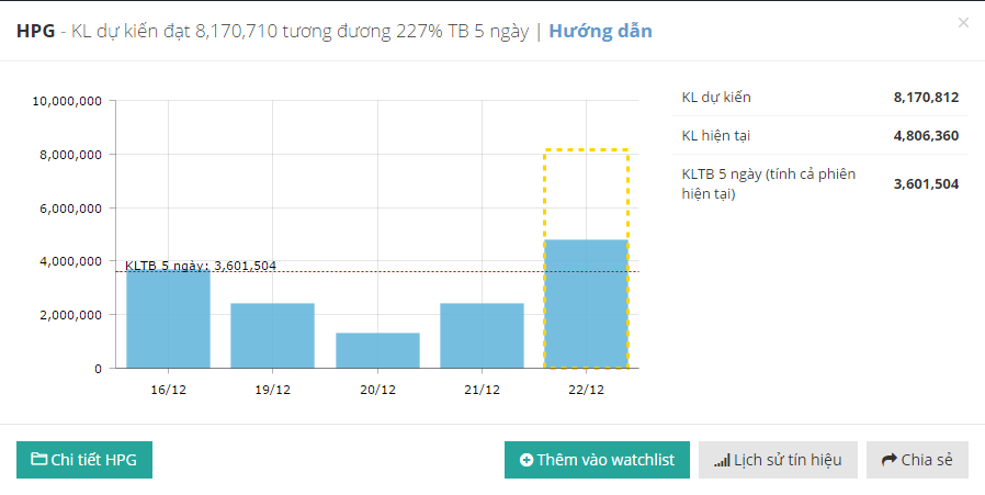 Khối lượng giao dịch của HPG phiên hôm nay dự kiến sẽ tăng gấp đôi trung bình 5 phiên, nếu tốc độ giao dịch tiếp tục duy trì đến cuối phiên thì dự kiến HPG sẽ khớp trên 8 triệu CP trong phiên hôm nay. Như vậy khả năng HPG sẽ kết thúc được chu kỳ phân kỳ âm giữa giá và KLGD.